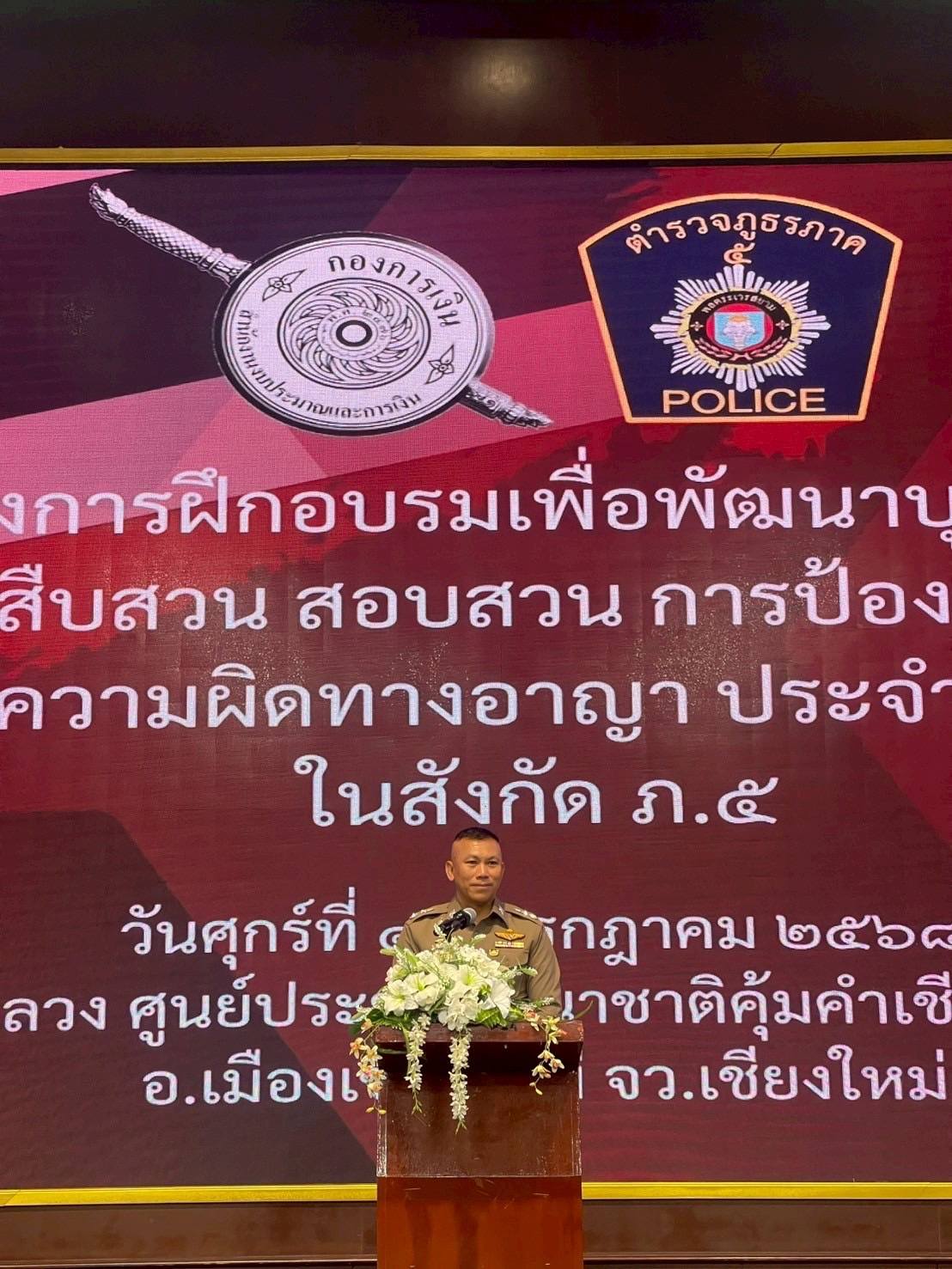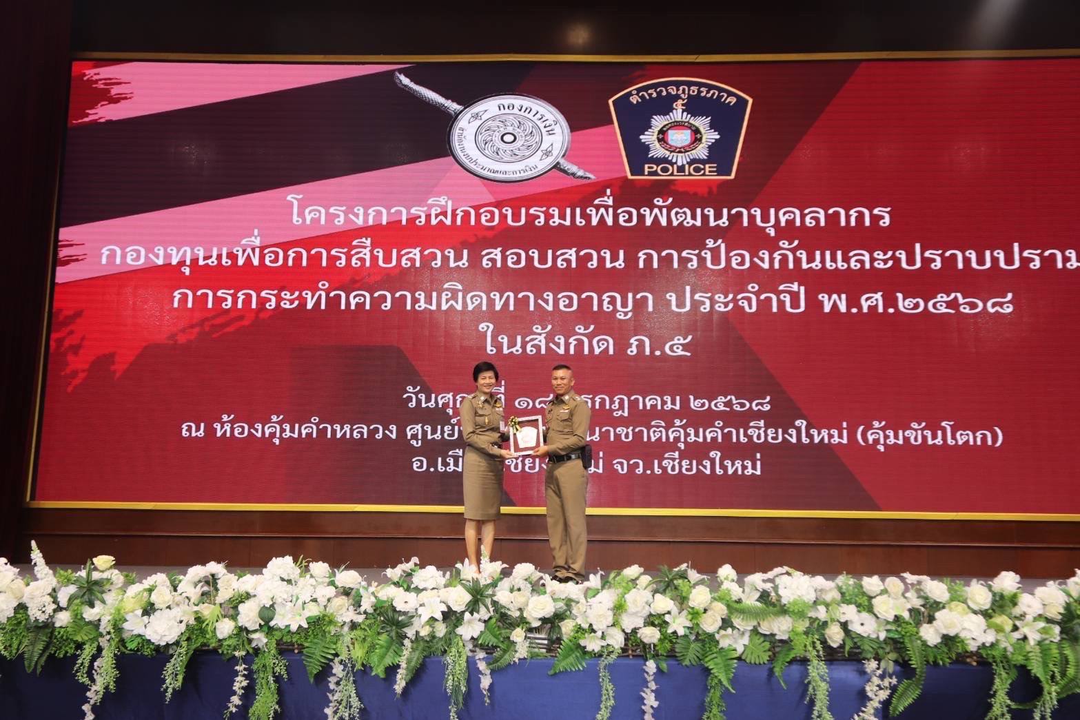 การป้องกันและปราบปรามการกระทำความผิดทางอาญา ประจำปี พ.ศ.2568 ให้แก่ข้าราชการตำรวจภูธร ภาค 5 ณ ห้องประชุมศูนย์ประชุมนานาชาติคุ้มคำเชียงใหม่ (คุ้มขันโตก) จังหวัดเชียงใหม่ โดยมี พล.ต.ต.พรพิทักษ์ รู้ยืนยง รอง ผบช.ภ.5 เป็นประธานพิธีเปิดการอบรมฯ
