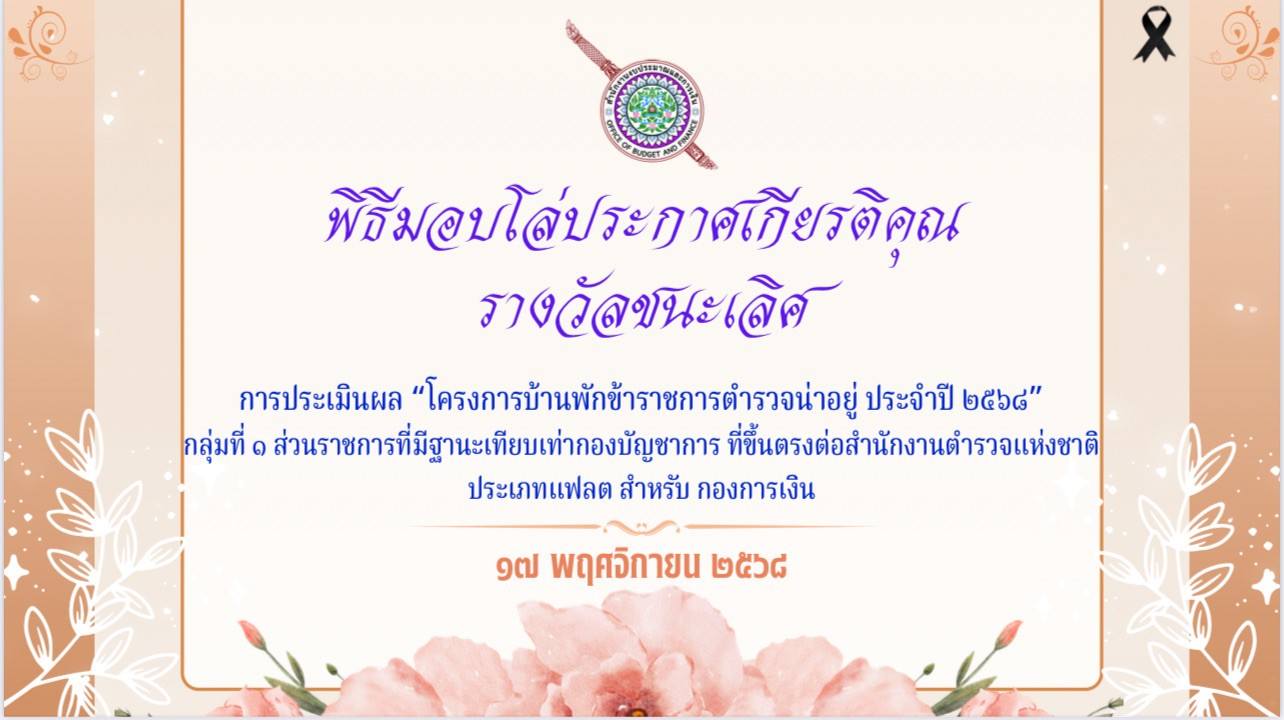 รางวัลชนะเลิศการประเมินผล “โครงการบ้านพักข้าราชการตำรวจน่าอยู่ประจำปี 2568”